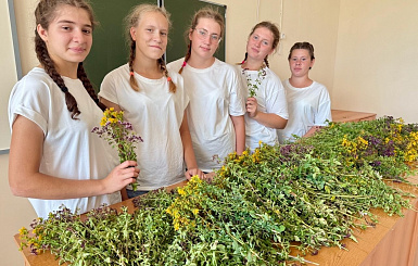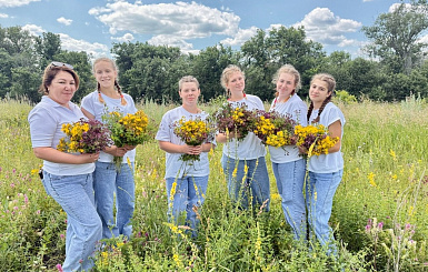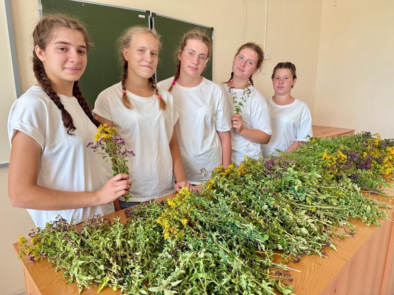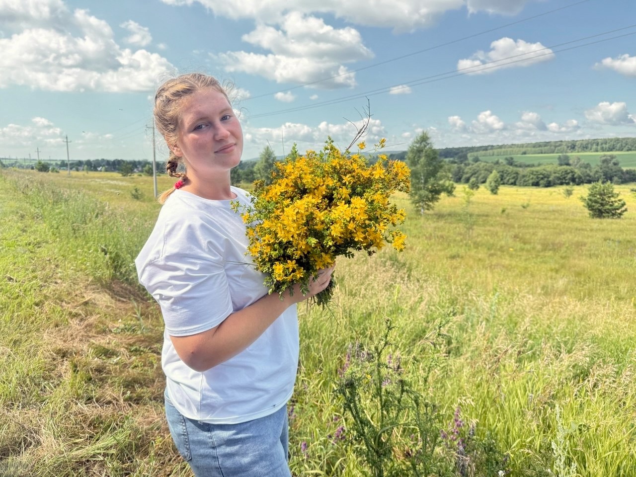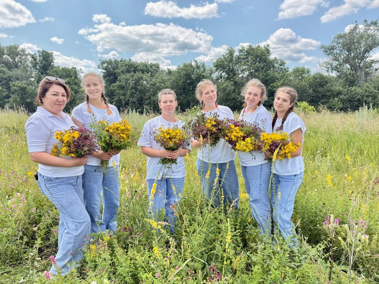 Чудесный летний день подарил нам еще одну замечательную возможность погрузиться в мир природы и заняться сбором целебных трав. Девочки гуляли по живописной поляне, окруженной лесом, с кристально чистым воздухом и пением птиц. Матрешка радовала глаз своими нежными соцветиями, а зверобой — яркими золотистыми цветами. Воспитанницы собирали травы с особым трепетом, соблюдая все правила, ведь совсем скоро этот сбор будет отсортирован для приготовления травяного чая и направлен бойцам на СВО.