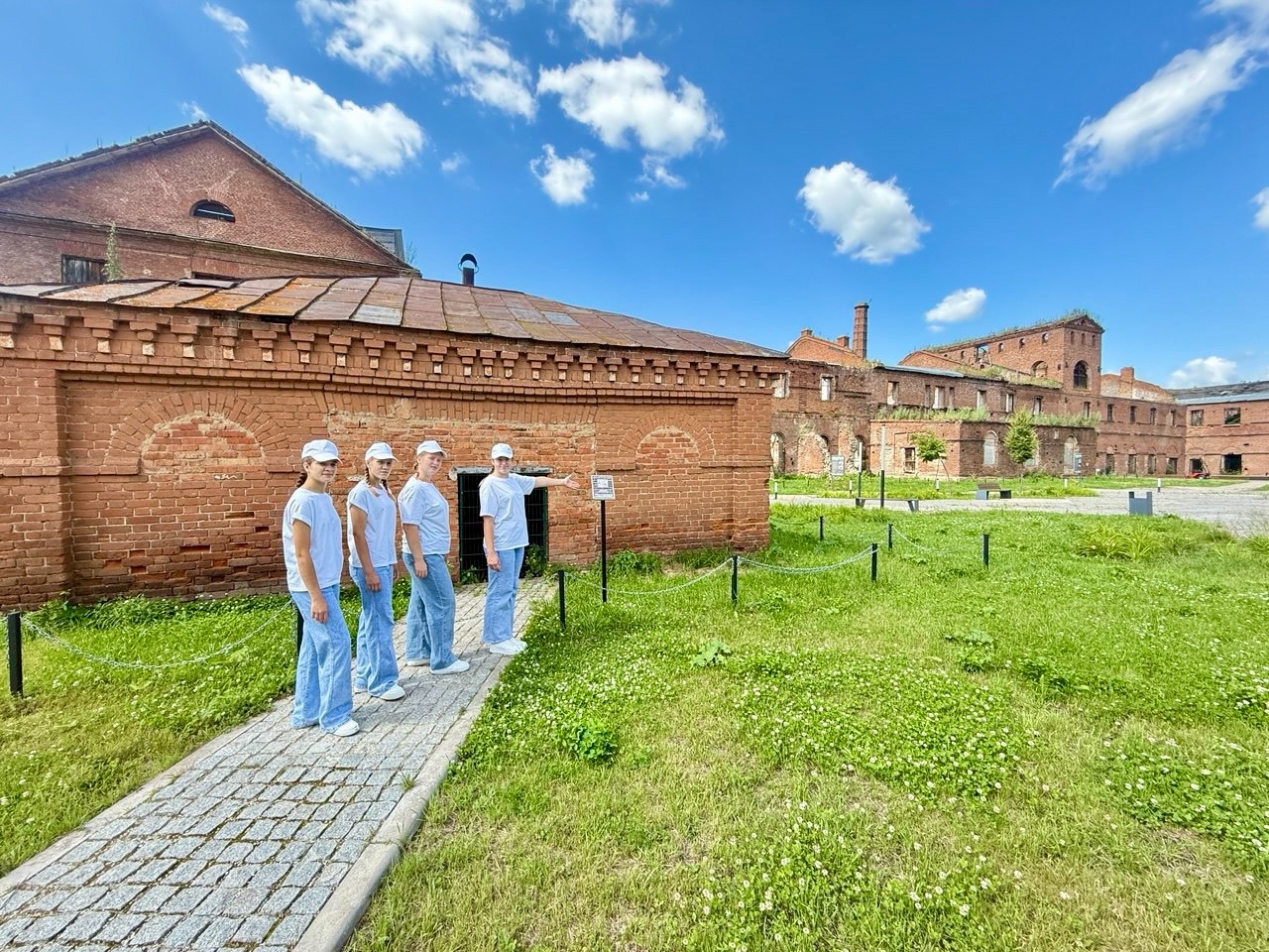 Это уникальное место поразило девочек с первых минут. Прогулка по территории старинного завода — настоящее путешествие во времени. Особенно впечатлили краснокирпичные стены, которым уже почти 300 лет, и величественная печная труба, возвышающаяся в центре села. Арт-объект встретил нас атмосферой таинственности и величия. С первого взгляда стало понятно — перед нами не просто заброшенное здание, а настоящий хранитель истории, застывший в камне и металле.