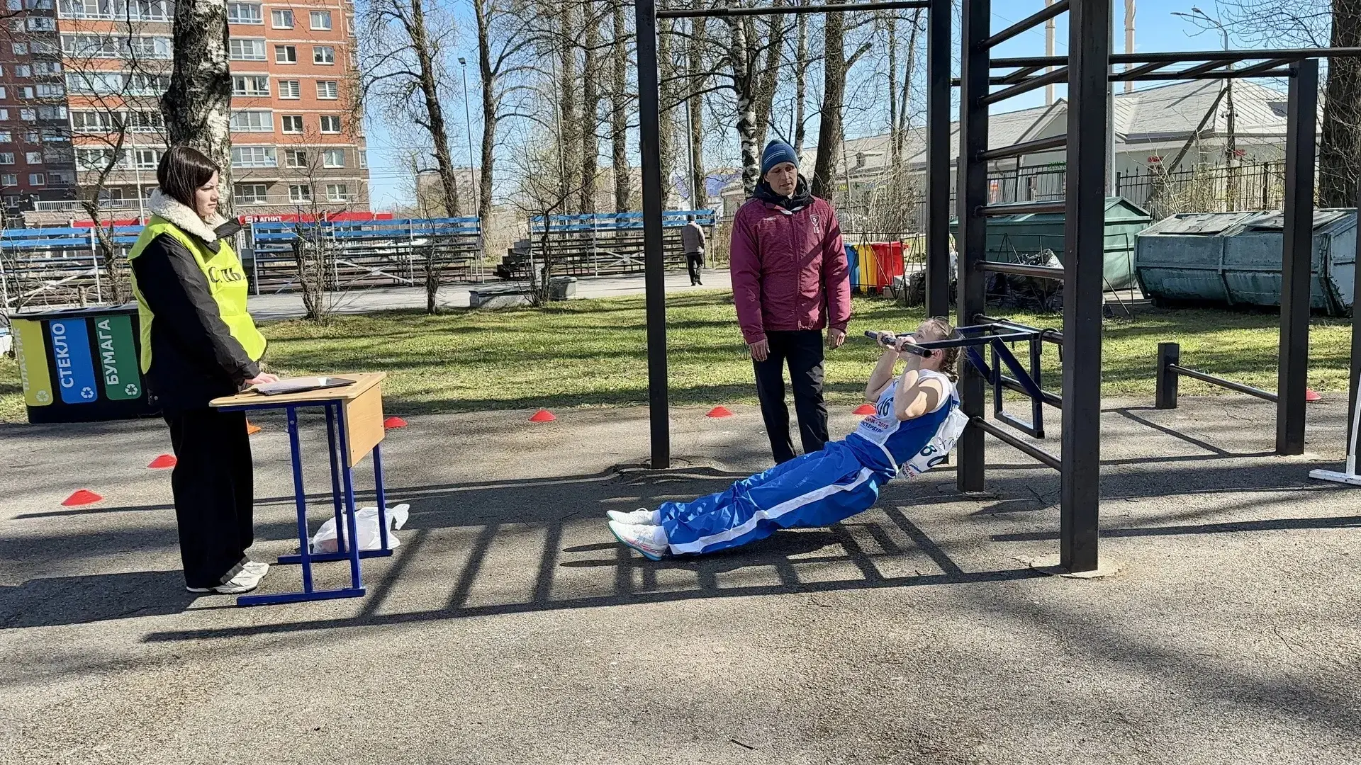 * Подтягивание на перекладине — демонстрация силы и выносливости.