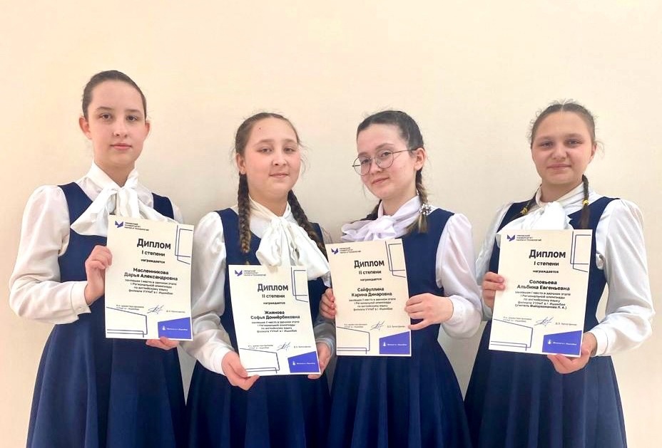 В Ишимбайском филиале Уфимского университета науки и технологий прошла I Региональная олимпиада по английскому языку. Это мероприятие проводилось с целью оценки качества знаний обучающихся и повышения мотивации к изучению английского языка как инструмента межкультурной профессиональной коммуникации. По итогам олимпиады обучающиеся нашего учреждения стали победителями и призерами: - среди обучающихся 8 кл: I место - Масленникова Дарья; II место – Сайфуллина Карина, Жиянова Софья; - среди обучающихся 10-11 кл.: I место – Соловьева Альбина. Поздравляем воспитанниц и желаем им дальнейших успехов в изучении английского языка.
