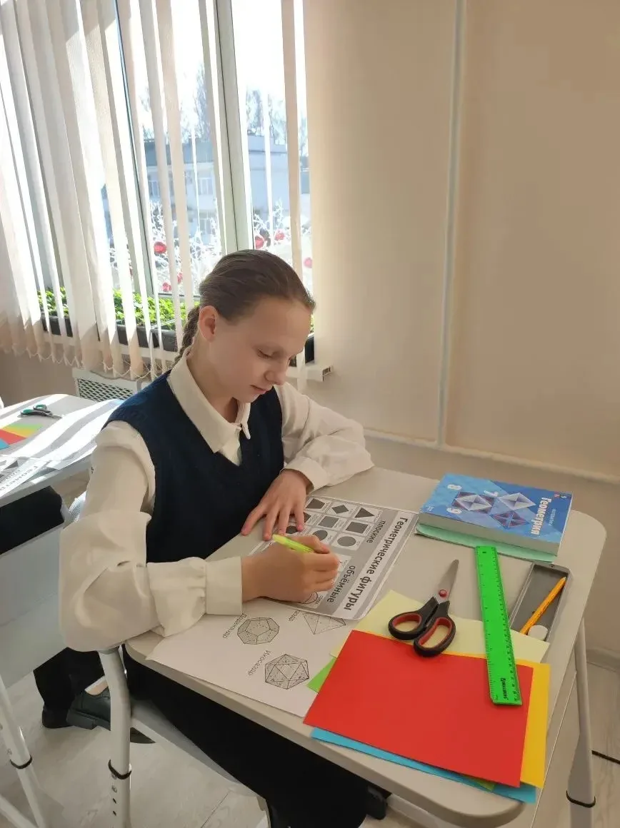 Особое внимание было уделено изучению геометрических тел и правильных многогранников на примере конструкции космического корабля. Девочки узнали, что благодаря своей симметрии и прочности платоновы тела часто используются в архитектуре космических модулей и астроинженерных решениях. На практике они научились распознавать геометрические тела в трёхмерных моделях, строить их мысленные сечения и поняли, почему природа и инженерия так часто обращаются к правильным многогранникам.